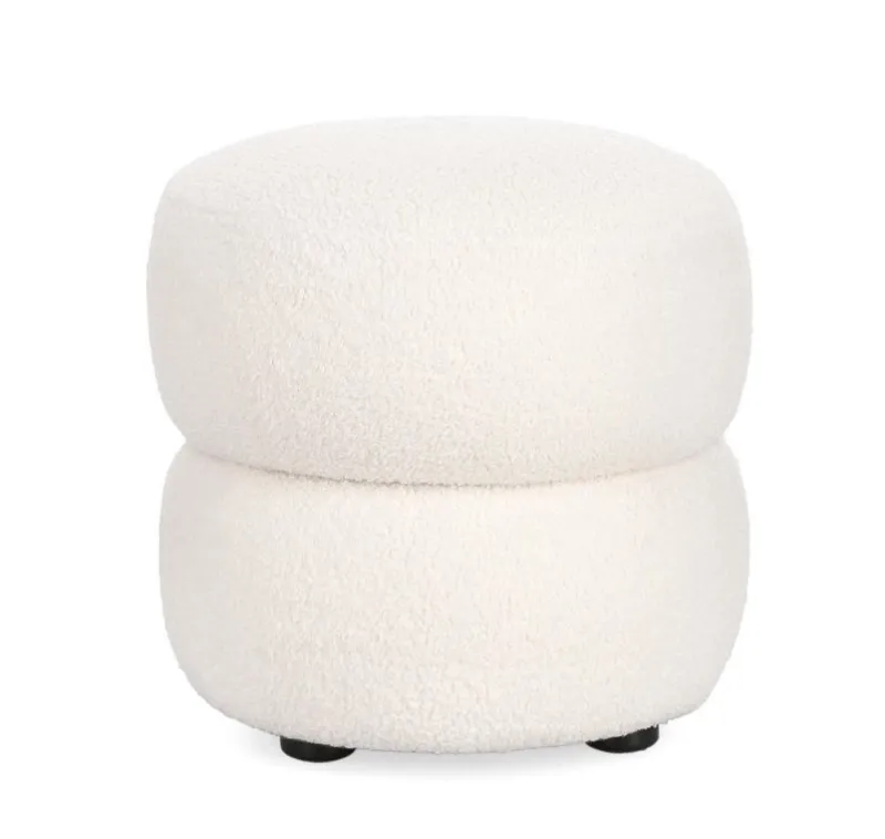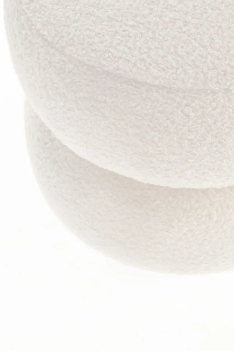 STRUTTURA IN COMPENSATO. RIVESTIMENTO IN POLIESTERE EFFETTO BOUCLE’. IMBOTTITURA IN SCHIUMA POLIURETANICA (DENSITA’ 24KG/M3). PIEDINI IN PLASTICA.