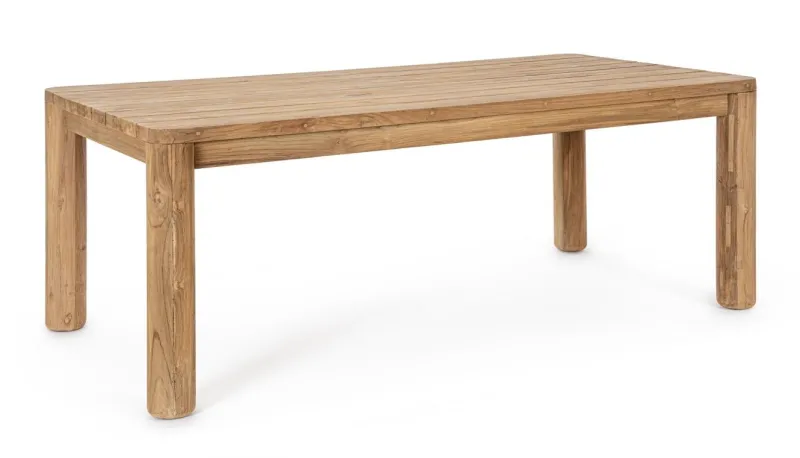 PIANO E GAMBE IN LEGNO TEAK RICICLATO – SVLK (LEGNO CERTIFICATO PROVENIENTE DA FORESTE SOSTENIBILI). FINITURA NATURALE SPAZZOLATA. VITERIA IN ACCIAIO INOSSIDABILE. IL PRODOTTO IN LEGNO RICICLATO È CARATTERIZZATO DALLA PRESENZA DI TASSELLI IN LEGNO DI DIVERSE SPECIE E COLORE. EVENTUALI FESSURE, CREPE O IMPERFEZIONI, CHE POSSONO