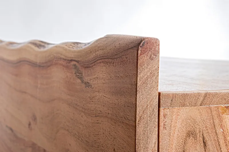 LEGNO DI ACACIA. FINITURA A BASE DI VERNICE POLIURETANICA. FRONTALE CASSETTO CON BORDI IRREGOLARI (EFFETTO LEGNO VIVO). ESSENDO LAVORATO A MANO, LE FORME E LE MISURE DEL LEGNO SONO SOLO INDICATIVE. TUTTI I PRODOTTI SARANNO DIVERSI L’UNO DALL’ALTRO.