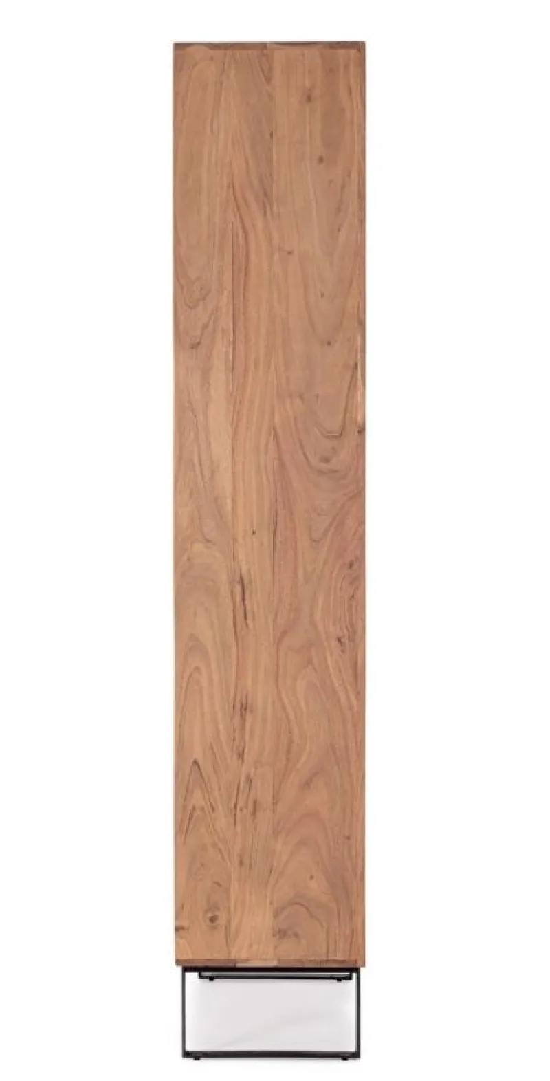 STRUTTURA IN LEGNO DI ACACIA, SCHIENALI IN COMPENSATO. FRONTALI ANTE INTARSIATI E LAVORATI A MANO. FINITURA ACRILICA PROTETTIVA. MANIGLIE E GAMBE IN ACCIAIO. GAMBE DA ASSEMBLARE.