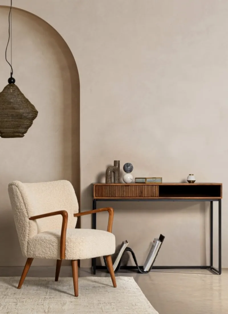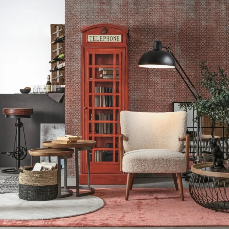 STRUTTURA IN LEGNO DI PINO E COMPENSATO. GAMBE E BRACCIOLI IN RUBBERWOOD. RIVESTIMENTO IN POLIESTERE EFFETTO LANA. DENSITA’ IMBOTTITURA IN SCHIUMA POLIURETANICA 24 KG/M3. NON SFODERABILE. GAMBE DA ASSEMBLARE.