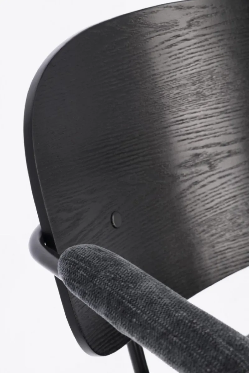 STRUTTURA IN ACCIAIO VERNICIATA A POLVERE EPOSSIDICA. SCHIENALE IN COMPENSATO IMPIALLACCIATO LEGNO DI PIOPPO. SEDUTA E BRACCIOLI IN COMPENSATO CON RIVESTIMENTO IN 100% POLIESTERE. DA ASSEMBLARE.
