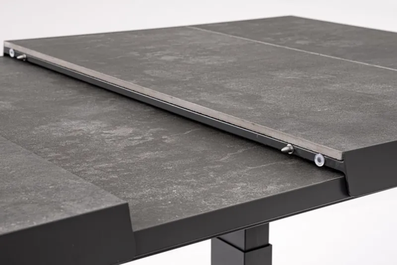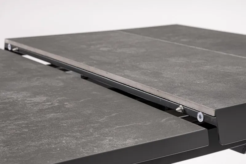 STRUTTURA IN ALLUMINIO VERNICIATA A POLVERE (POLIESTERE). PIANO IN CERAMICA (SPESSORE 10MM). ALLUNGABILE CON PROLUNGA AUTOMATICA. ALTEZZA REGOLABILE TRAMITE MANIGLIA. VITERIA IN ACCIAIO INOSSIDABILE. PIEDINI REGOLABILI. DA ASSEMBLARE.