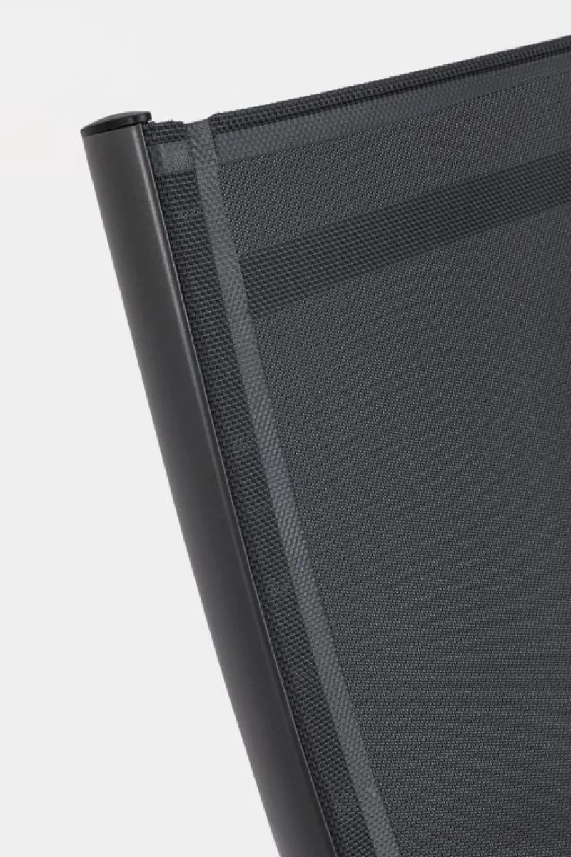 STRUTTURA IN ALLUMINIO, VERNICIATO A POLVERE (POLIESTERE). SEDUTA E SCHIENALE IN TEXTILENE 2X1 (610G/M2). FERRAMENTA IN ACCIAIO INOSSIDABILE. SCHIENALE RECLINABILE (QUATTRO POSIZIONI).