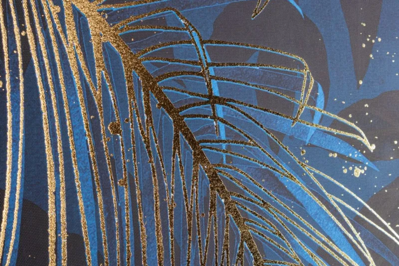STAMPA SU TELA CON APPLICAZIONI AD OLIO E FOGLI DORATI, MDF.