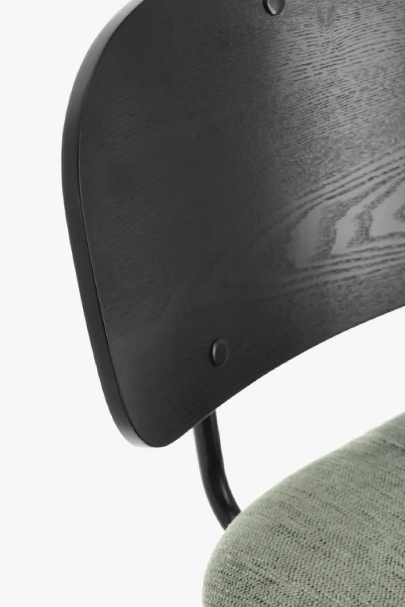 STRUTTURA IN ACCIAIO VERNICIATA A POLVERE EPOSSIDICA. SCHIENALE IN COMPENSATO IMPIALLACCIATO LEGNO DI PIOPPO. SEDUTA IN COMPENSATO CON RIVESTIMENTO IN 100% POLIESTERE. DA ASSEMBLARE.