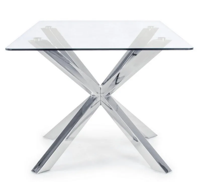 GAMBE IN ACCIAIO CROMATO. PIANO IN VETRO TEMPERATO SPESSORE 10MM. GAMBE DA ASSEMBLARE.