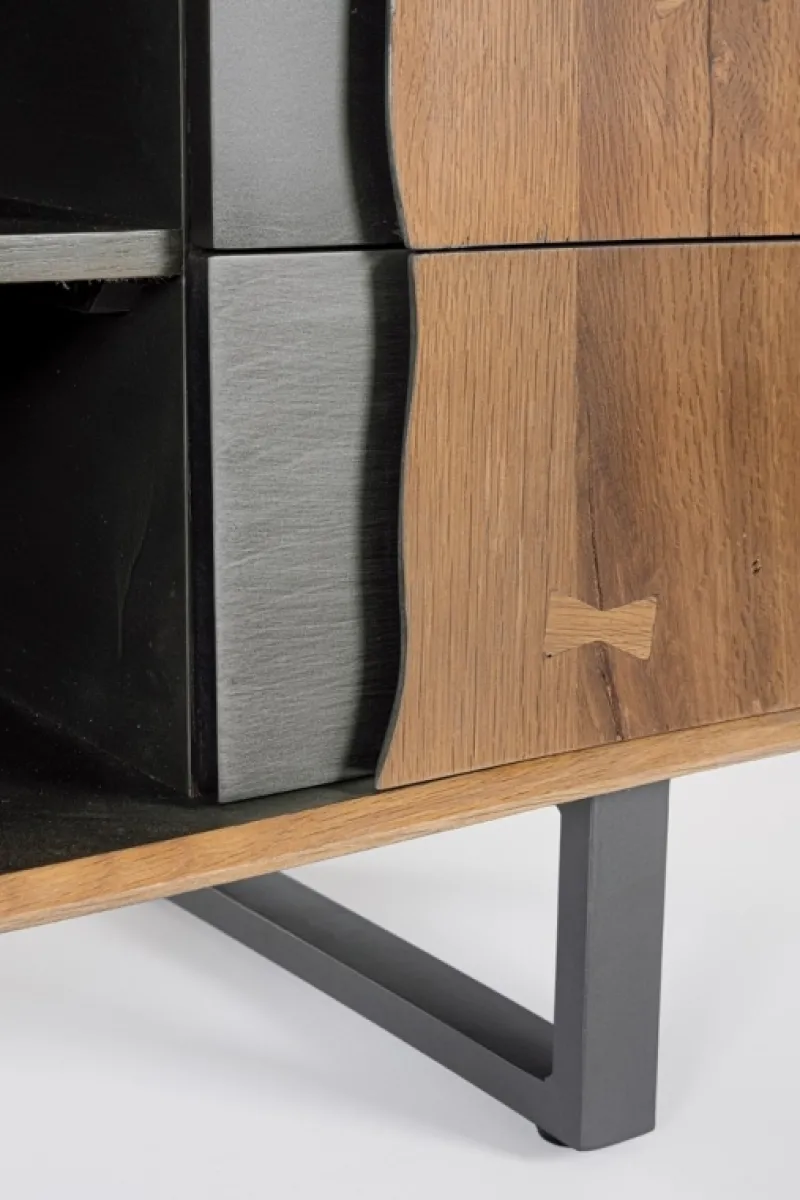 MDF IMPIALLACCIATO ROVERE. FINITURA NATURALE CON VERNICE A BASE D’ACQUA. VANO ANTE COMPRENSIVO DI MENSOLA. INTERNO ANTE E CASSETTI DI COLORE ANTRACITE CON CHIUSURA AMMORTIZZATA IN ACCIAIO. GAMBE IN ACCIAIO VERNICIATE A POLVERE EPOSSIDICA. GAMBE DA ASSEMBLARE.