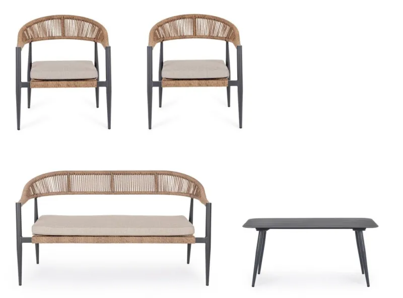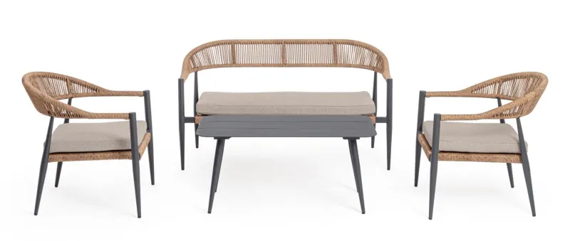 Clearance Bizzotto SET4 SALOTTO C-C JANDIA ANTRACIT/NATURAL