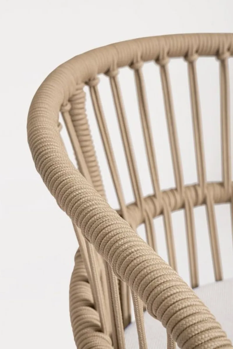 STRUTTURA IN ALLUMINIO VERNICIATA A POLVERE (POLIESTERE). INTRECCIO PER ESTERNO IN CORDA (POLIESTERE). CUSCINI SFODERABILI CON TESSUTO IDROREPELLENTE OLEFIN (100% POLIPROPILENE). IMPILABILE. IMBALLO SENZA CARTONE.