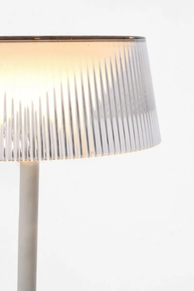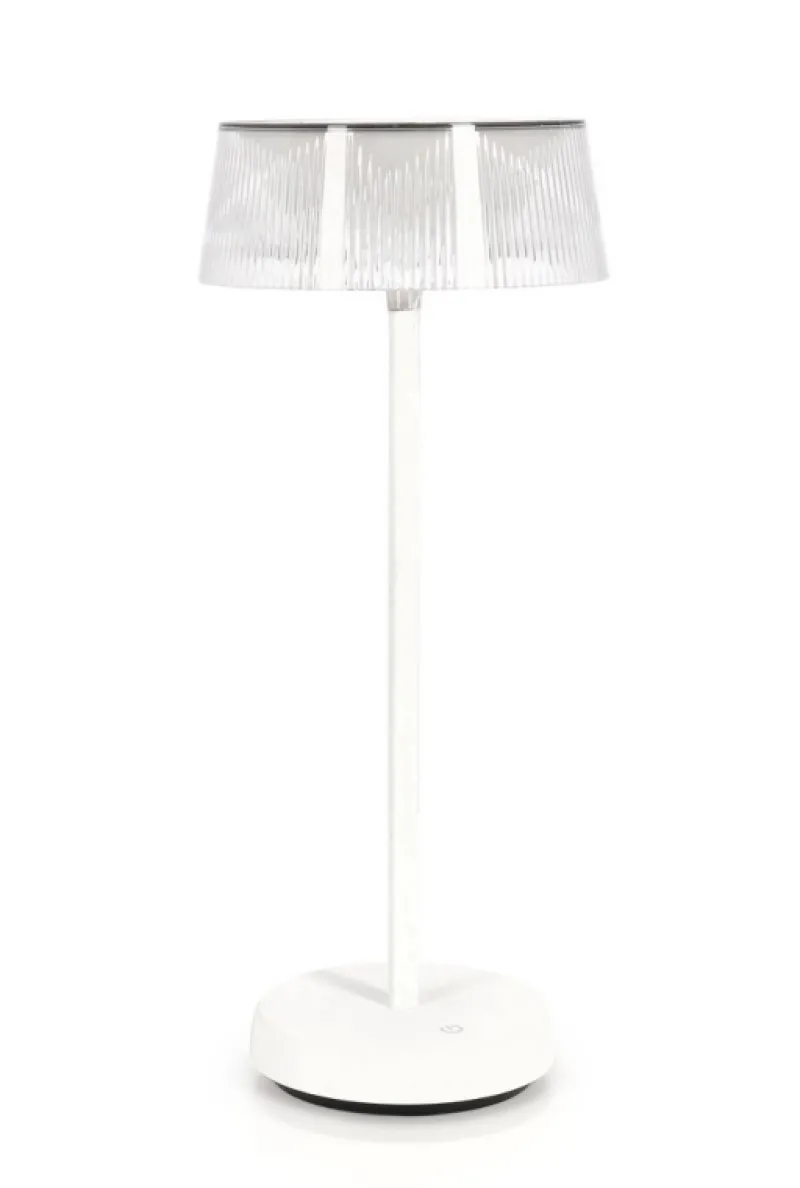PC, ABS E METALLO, PARALUME IN POLICARBONATO. LAMPADA LED, LUCE DIMMERABILE, RICARICABILE CON CAVO USB 1 MT INCLUSO. TASTO ON/OFF TOUCH. PER USO INTERNO ED ESTERNO, IP44.