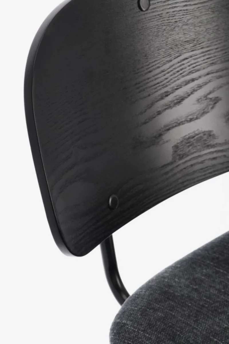 STRUTTURA IN ACCIAIO VERNICIATA A POLVERE EPOSSIDICA. SCHIENALE IN COMPENSATO IMPIALLACCIATO LEGNO DI PIOPPO. SEDUTA IN COMPENSATO CON RIVESTIMENTO IN 100% POLIESTERE. DA ASSEMBLARE.