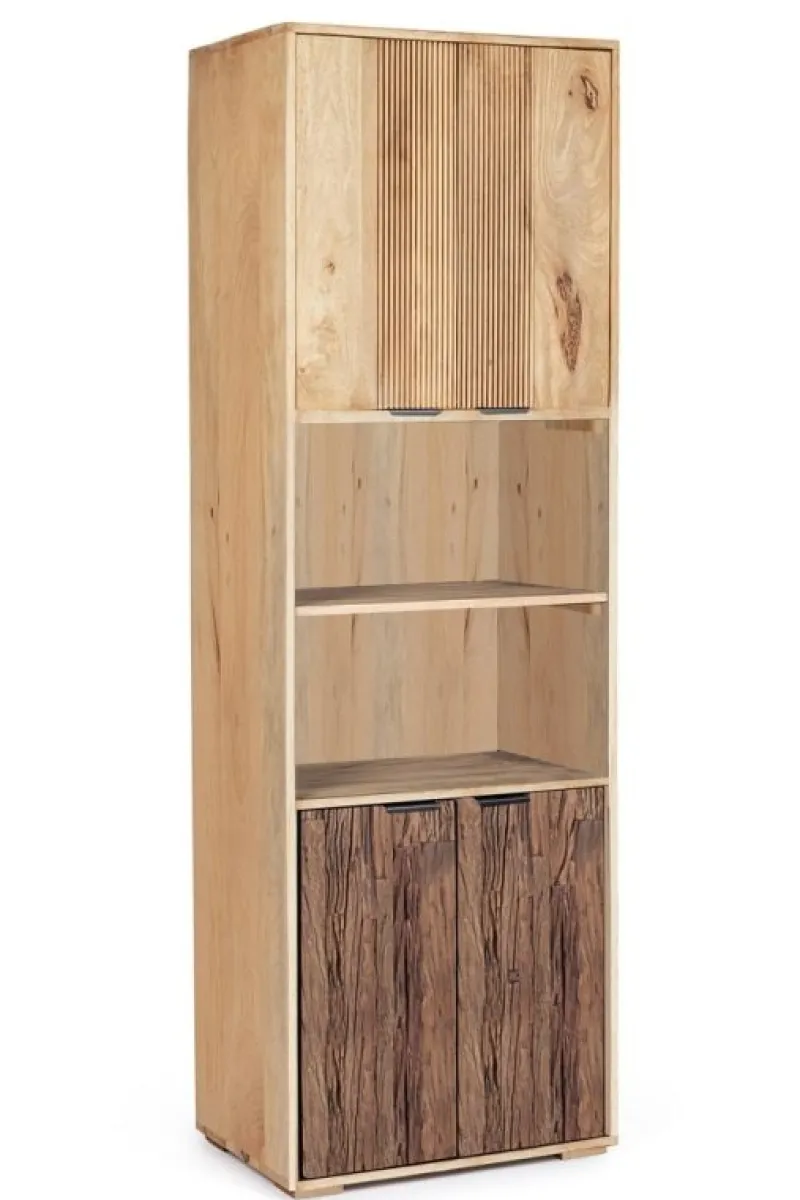 STRUTTURA IN LEGNO MANGO, SCHIENALE IN COMPENSATO. FRONTALE ANTE IN LEGNO DI MANGO O RICICLATO. FINITURA ACRILICA PROTETTIVA. VANO PORTA COMPRENSIVO DI MENSOLA. MANIGLIE IN METALLO. IL PRODOTTO IN LEGNO RICICLATO È CARATTERIZZATO DALLA PRESENZA DI TASSELLI IN LEGNO DI DIVERSE SPECIE E COLORE. EVENTUALI FESSURE, CREPE O IMPERFEZIONI, CHE POSSONO GENERARSI ANCHE NEL CORSO DEL TEMPO, SONO CARATTERISTICHE DI QUESTO MATERIALE E RENDONO OGNI PEZZO UNICO E ORIGINALE.