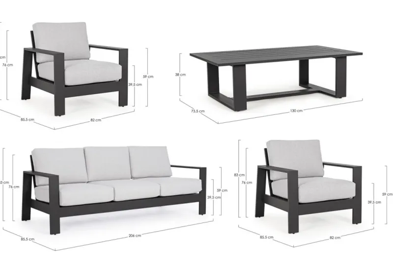 Hot Bizzotto SALOTTO IN ALLUMINIO ANTRACITE YK13 – BALTIC