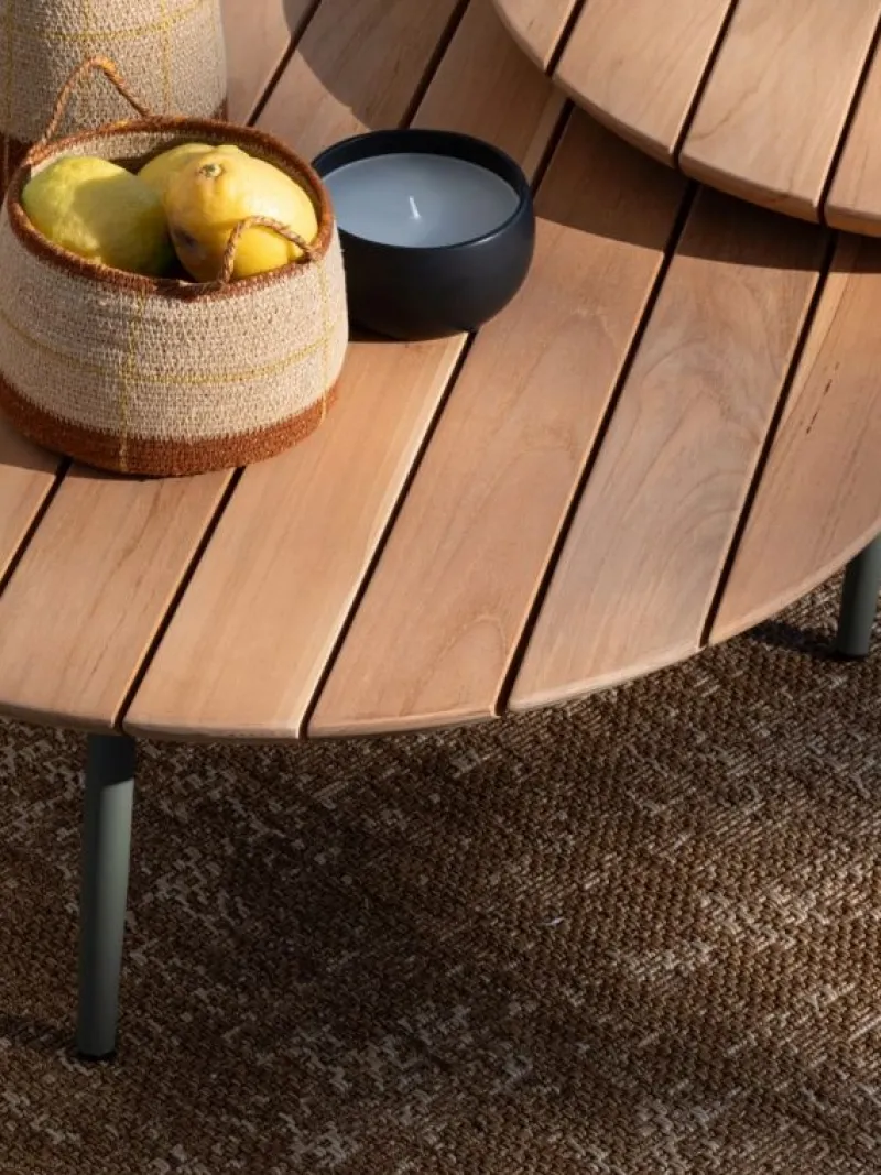 GAMBE IN ACCIAIO INOSSIDABILE (201). PIANO IN TEAK – SVLK (LEGNO CERTIFICATO PROVENIENTE DA FORESTE SOSTENIBILI). VITERIA IN ACCIAIO INOSSIDABILE. GAMBE DA ASSEMBLARE.