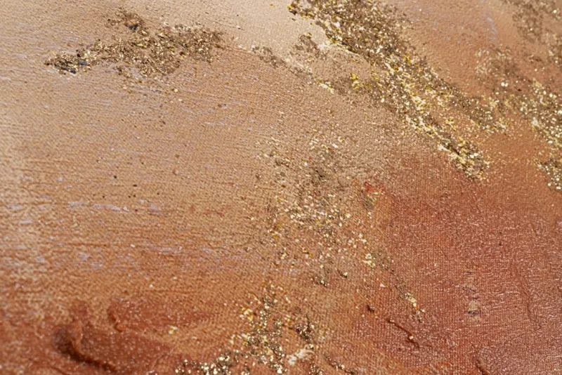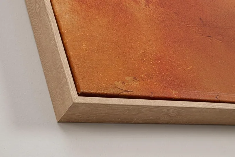 STAMPA SU TELA DIPINTA A MANO CON APPLICAZIONI FOGLI DORATI. CORNICE IN PLASTICA. TELAIO IN MDF.