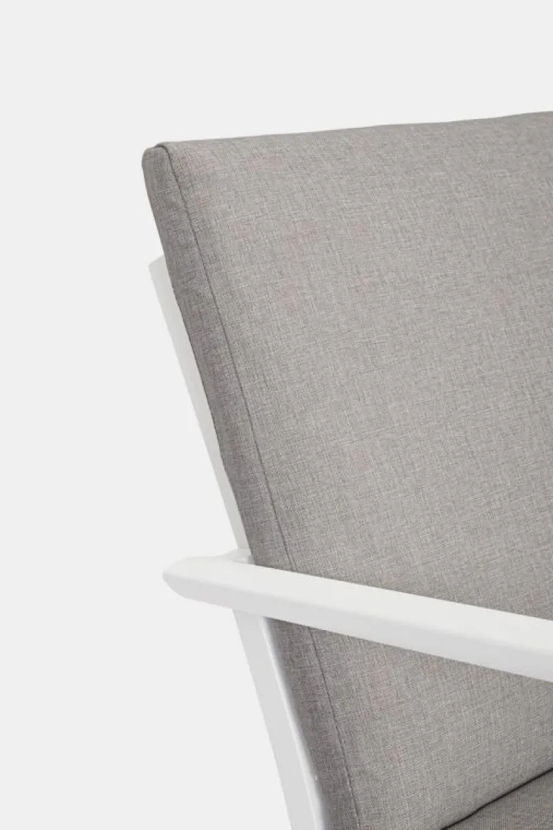 STRUTTURA IN ALLUMINIO, VERNICIATO A POLVERE (POLIESTERE). SEDUTA E SCHIENALE IN TEXTILENE 1X1. CUSCINI SFODERABILI CON TESSUTO IDROREPELLENTE OLEFIN (100% POLIPROPILENE). VITERIA IN ACCIAIO INOSSIDABILE. SCHIENALI E GAMBE TAVOLINO DA ASSEMBLARE.