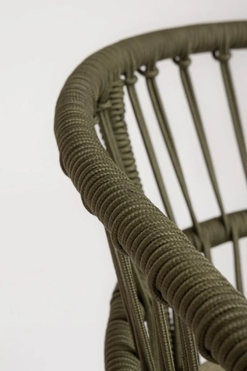 STRUTTURA IN ALLUMINIO VERNICIATA A POLVERE (POLIESTERE). INTRECCIO PER ESTERNO IN CORDA (POLIESTERE). CUSCINI SFODERABILI CON TESSUTO IDROREPELLENTE OLEFIN (100% POLIPROPILENE). IMPILABILE. IMBALLO SENZA CARTONE.
