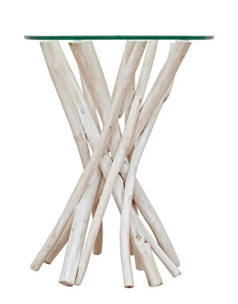 New Bizzotto TAVOLINO IN TEAK CON RIPIANO IN VETRO D40 – SAHEL