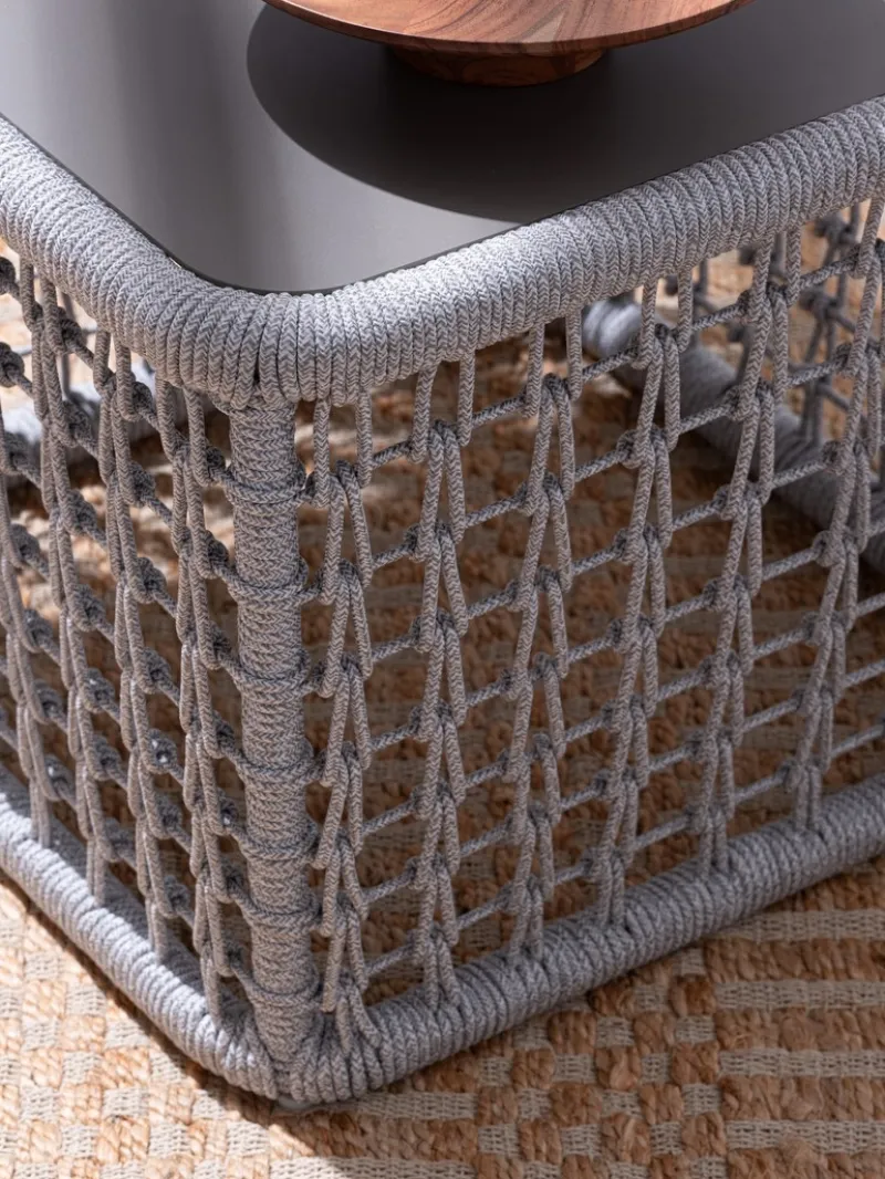 STRUTTURA IN ALLUMINIO VERNICIATO A POLVERE (POLIESTERE). INTRECCIO IN CORDA OLEFIN (100% POLIPROPILENE).