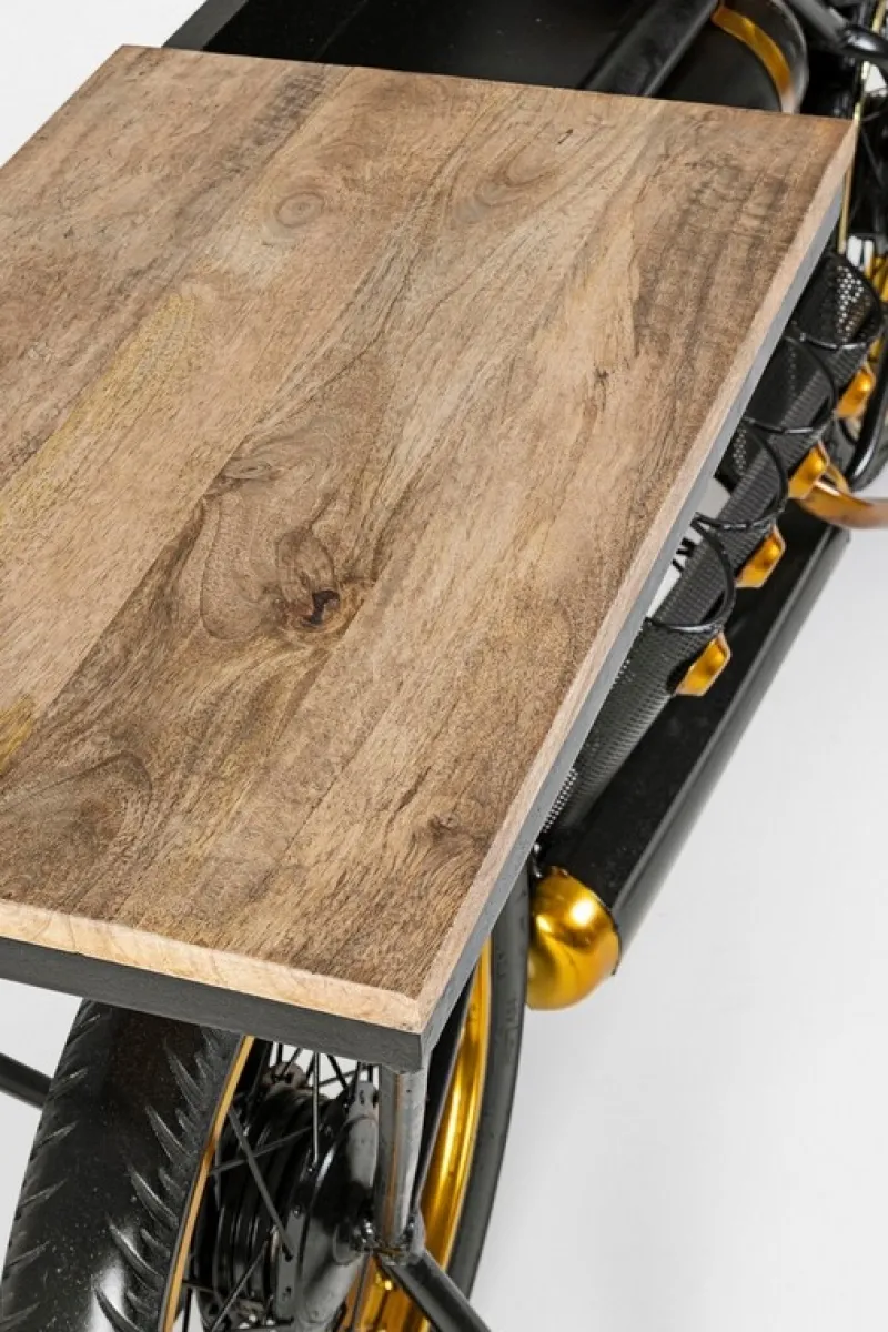 STRUTTURA IN ACCIAIO. PIANO IN LEGNO DI MANGO. COMPRENSIVO DI PORTABOTTIGLIE. TRATTANDOSI DI PRODUZIONE ARTIGIANALE OGNI MODELLO PUO’ VARIARE IN PICCOLI PARTICOLARI COSTRUTTIVI. EVENTUALI PICCOLE CREPE O SPACCATURE SONO DA RITENERSI CARATTERISTICHE PROPRIE AL NATURALE LAVORO DI RECUPERO.