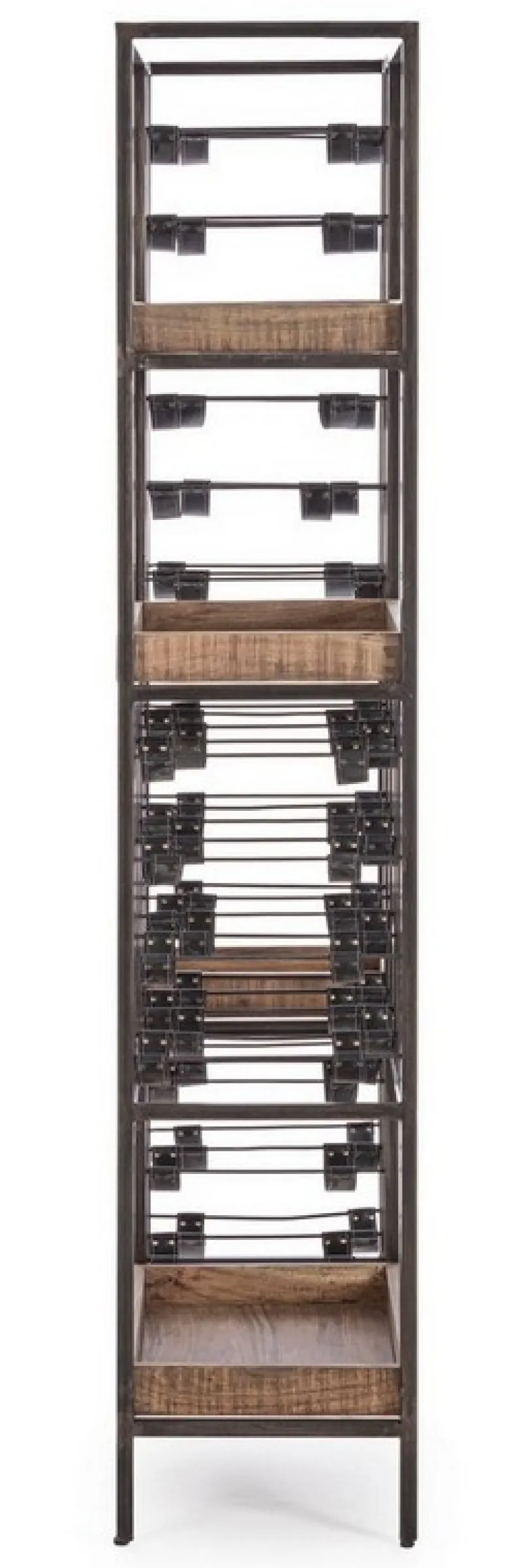 STRUTTURA IN ACCIAIO VERNICIATO A POLVERE EPOSSIDICA. PIANI IN LEGNO D’ACACIA. FINITURA ACRILICA PROTETTIVA. PORTA BOTTIGLIE IN SIMILPELLE (PU).