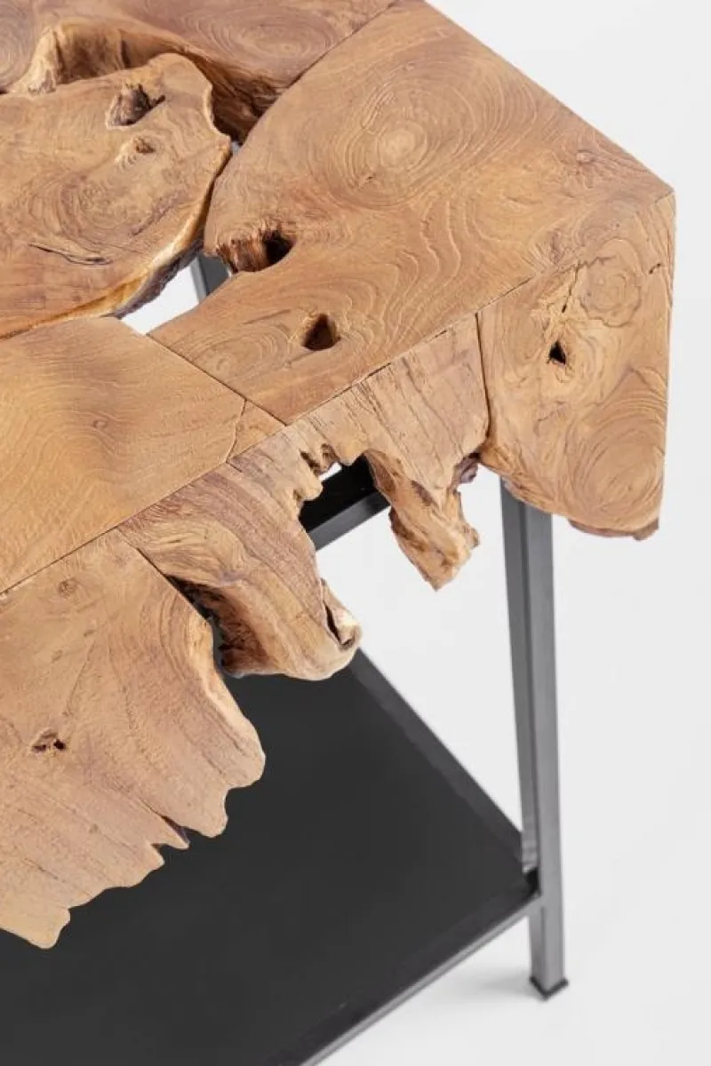 PIANO IN RADICI DI TEAK CON FINITURA A BASE D’ACQUA, BASE IN ACCIAIO VERNICIATO A POLVERE EPOSSIDICA. LE FORME CREATE DAL LEGNO SONO SOLO INDICATIVE, TUTTI I PRODOTTI SARANNO DIVERSI L’UNO DALL’ALTRO.