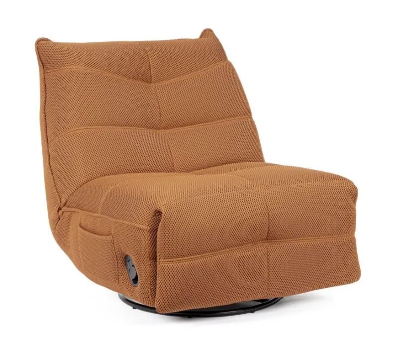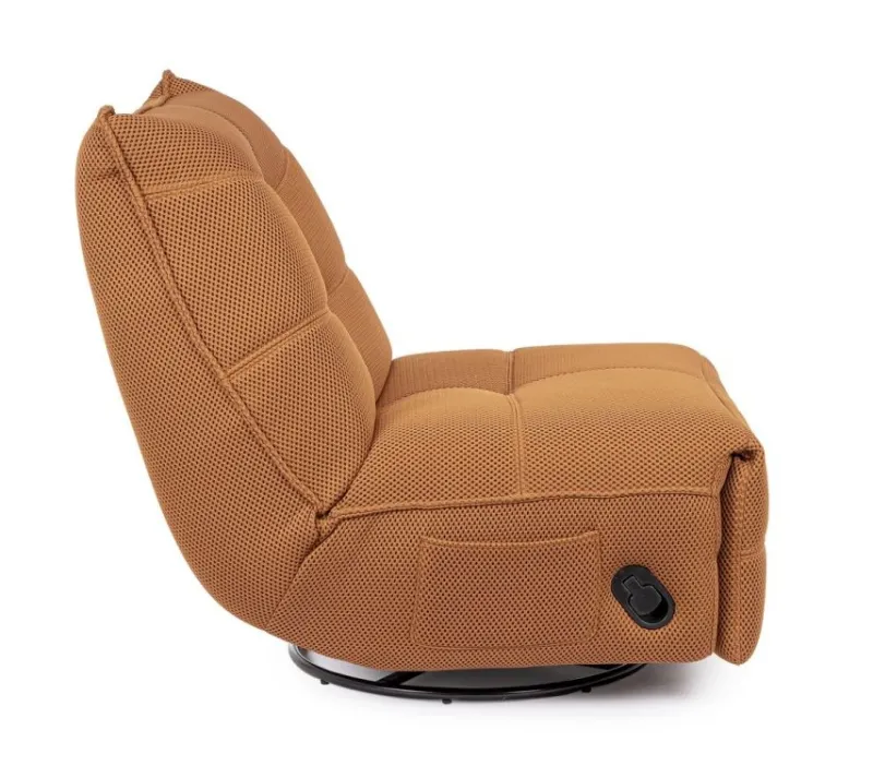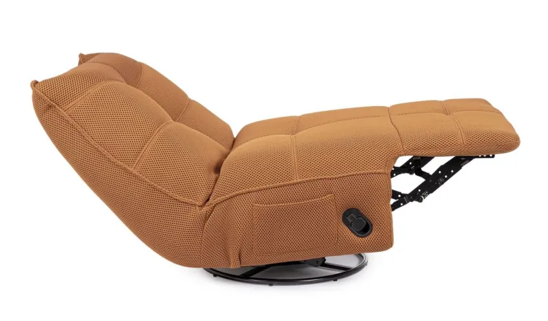 STRUTTURA IN COMPENSATO ED ACCIAIO. RIVESTIMENTO IN POLIESTERE EFFETTO TESSUTO TECHNO 3D . IMBOTTITURA IN SCHIUMA POLIURETANICA DENSITA’ 20-24 KG/M3. RECLINABILE PARTE POGGIAPIEDI.