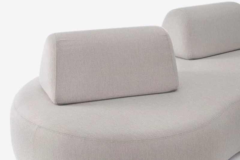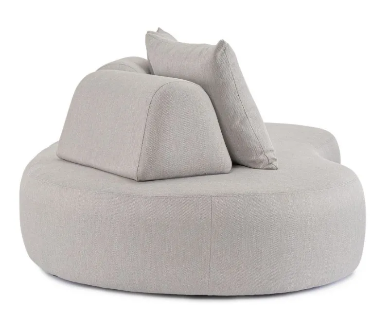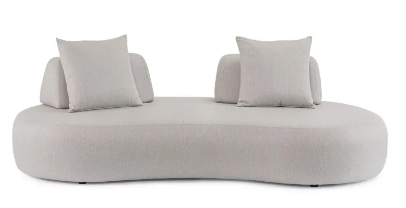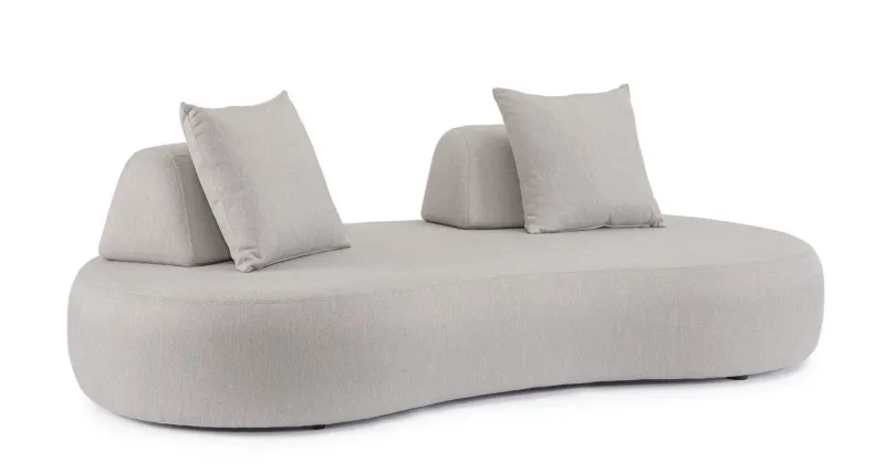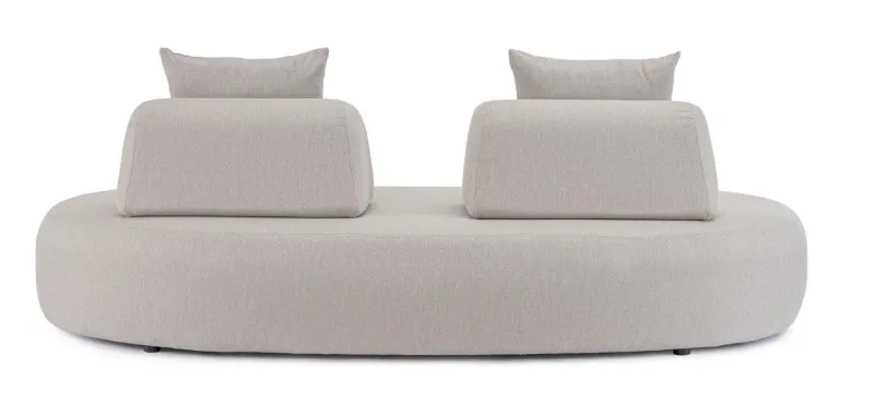 DIVANO CON STRUTTURA IN ALLUMINIO. SCHIENALI REMOVIBILI CON STRUTTURA IN ACCIAIO, GALVANIZZATA A CALDO E VERNICIATA A POLVERE (POLIESTERE). SCHIENALI E CUSCINI SFODERABILI IN TESSUTO PER ESTERNO OLEFIN (100% POLIPROPILENE, 285GR/M2), IDROREPELLENTE E RESISTENTE AI RAGGI UV (GRADO 7), IMPERMEABILIZZATO INTERNAMENTE CON RIVESTIMENTO IN TESSUTO (POLIURETANO). IMBOTTITURA IN SCHIUMA POLIURETANICA, DENSITA’ SEDUTA 38KG/M3, SCHIENALI 20KG/M3. ARTICOLO COMPOSTO DA: N °1 DIVANO, N°2 SCHIENALI MEZZALUNA, N°2 CUSCINETTI.