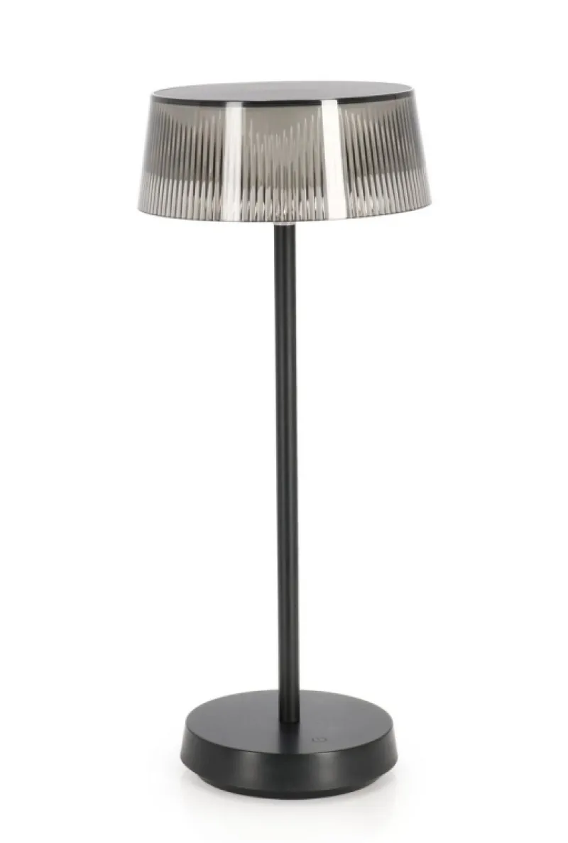 PC, ABS E METALLO, PARALUME IN POLICARBONATO. LAMPADA LED, LUCE DIMMERABILE, RICARICABILE CON CAVO USB 1 MT INCLUSO. TASTO ON/OFF TOUCH. PER USO INTERNO ED ESTERNO, IP44.