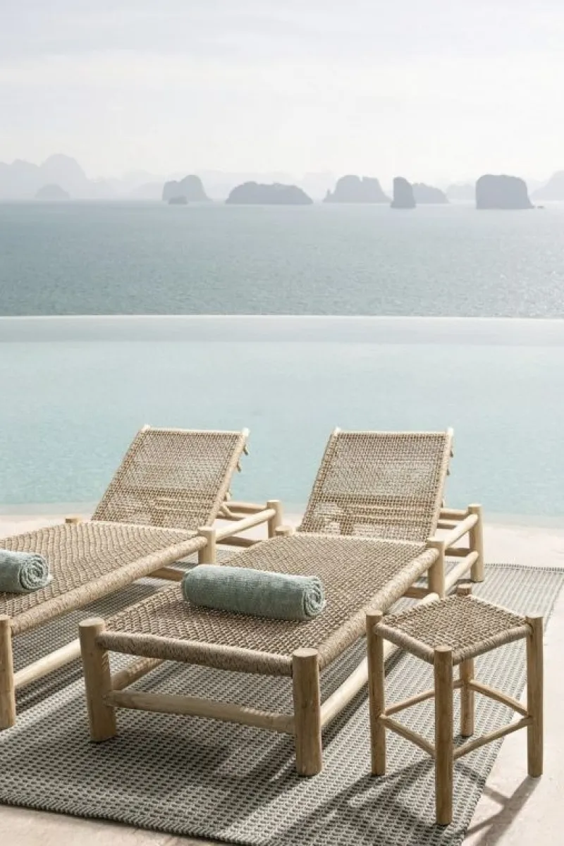 STRUTTURA IN RAMI DI TEAK, SEDUTA E SCHIENALE CON INTRECCIO IN FIBRA SINTETICA (VIRO). SCHIENALE RECLINABILE (4 POSIZIONI). SI RACCOMANDA DI NON ESPORRE L’ARTICOLO ALLA LUCE DIRETTA DEL SOLE ED ALLE INTEMPERIE. LE FORME ORIGINALI CREATE DAL LEGNO SONO SOLO INDICATIVE, TUTTI I PRODOTTI SARANNO DIVERSI L’UNO DALL’ALTRO. FESSURAZIONI E PICCOLE CREPE NELLA STRUTTURA SONO DA