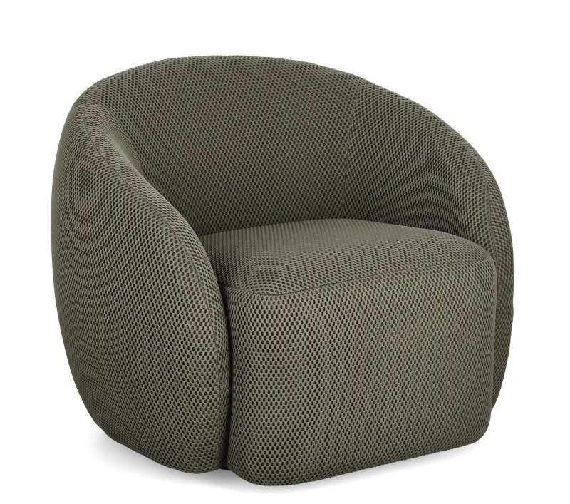 STRUTTURA IN COMPENSATO. RIVESTIMENTO IN 100% POLIESTERE. IMBOTTITURA IN SCHIUMA POLIURETANICA DENSITA’ 25KG/M3. BASE GIREVOLE 360GR.