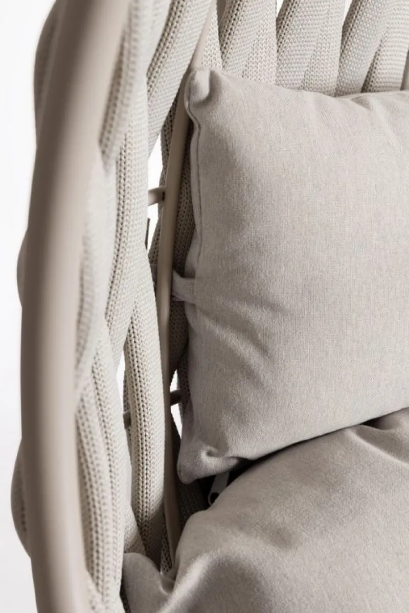 STRUTTURA IN ACCIAIO TRATTATA PER L’ESTERNO TRAMITE FOSFATAZIONE E VERNICIATA A POLVERE (POLIESTERE). INTRECCIO IN CORDA DI POLIESTERE CON IMBOTTITURA IN GOMMA NITRILICA. CUSCINI SFODERABILI IN TESSUTO IDROREPELLENTE POLIESTERE. PORTATA MASSIMA: 130KG. IMBALLO SENZA CARTONE. DA ASSEMBLARE.
