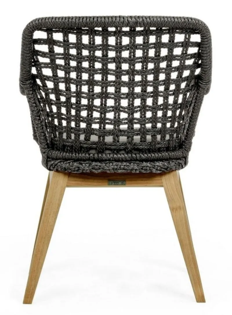 SEDUTA CON STRUTTURA IN ALLUMINIO VERNICIATA A POLVERE (POLIESTERE). INTRECCIO IN FIBRA SINTETICA VIRO CON ORIGINALE PIEGATURA A TRECCIA (EFFETTO PELLE). CUSCINO SEDUTA SFODERABILE IN TESSUTO IDROREPELLENTE SUNPROOF OLEFIN (100% POLIPROPILENE). GAMBE IN TEAK – SVLK (LEGNO CERTIFICATO PROVENIENTE DA FORESTE SOSTENIBILI). VITERIA IN ACCIAIO GALVANIZZATO. GAMBE DA ASSEMBLARE. ATTENZIONE: PRIMA DI PROCEDERE AL MONTAGGIO, ASSICURARSI CHE LA NUMERAZIONE SEDUTA-GAMBE COINCIDA.